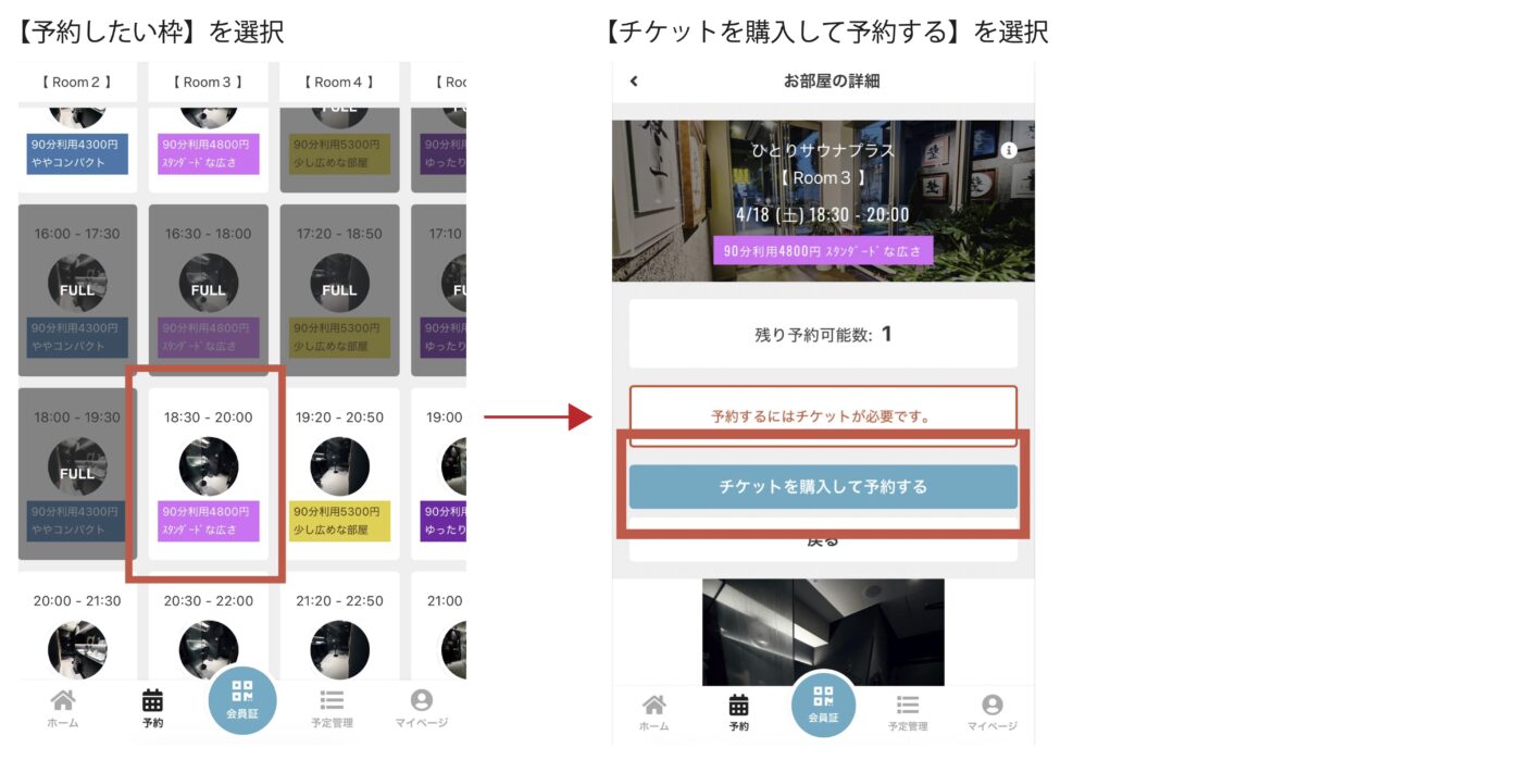 予約したい日程を指定し、「チケットを購入して予約する」を選択