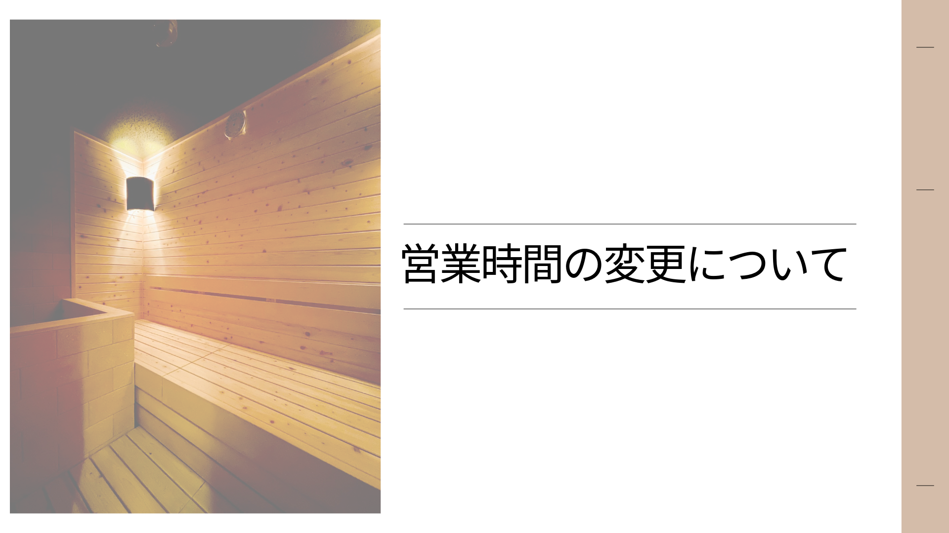 News 営業時間の変更について 平素より格別のご愛顧を賜り、厚く御礼申し上げます。 誠に勝手ながら、働き方改革などに伴い、 下記の通り営業時間を変更させていただくことになりました。 お客様にはご不便をおかけいたしますが、 何卒ご理解のほどよろしくお願い申し上げます。 変更日:2026年4月1日(水)より 新営業時間 平日 10:20〜23:00 土日祝 10:00〜23:00 « 広いお部屋500円OFF